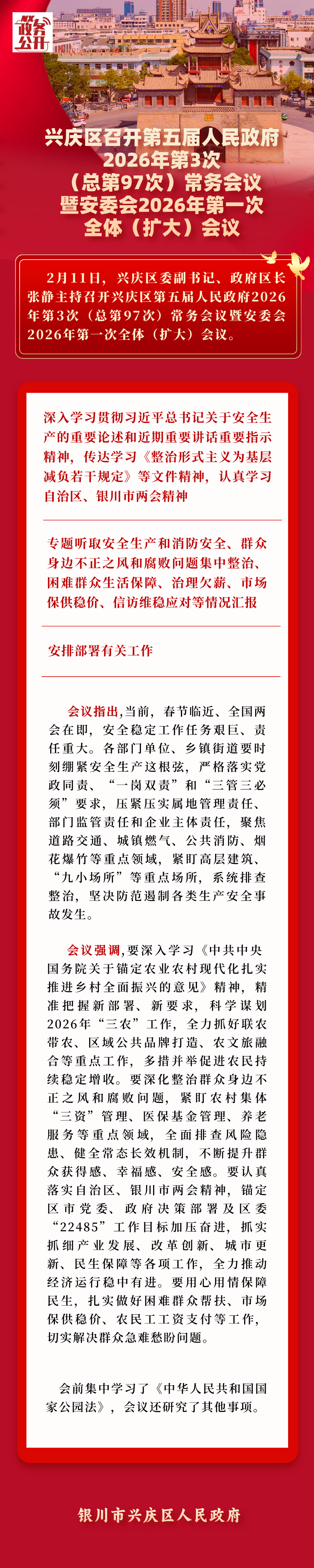 一图读懂:兴庆区召开第五届人民政府2026年第3次(总第97次)常务会议暨安委会2026年第一次全体(扩大)会议